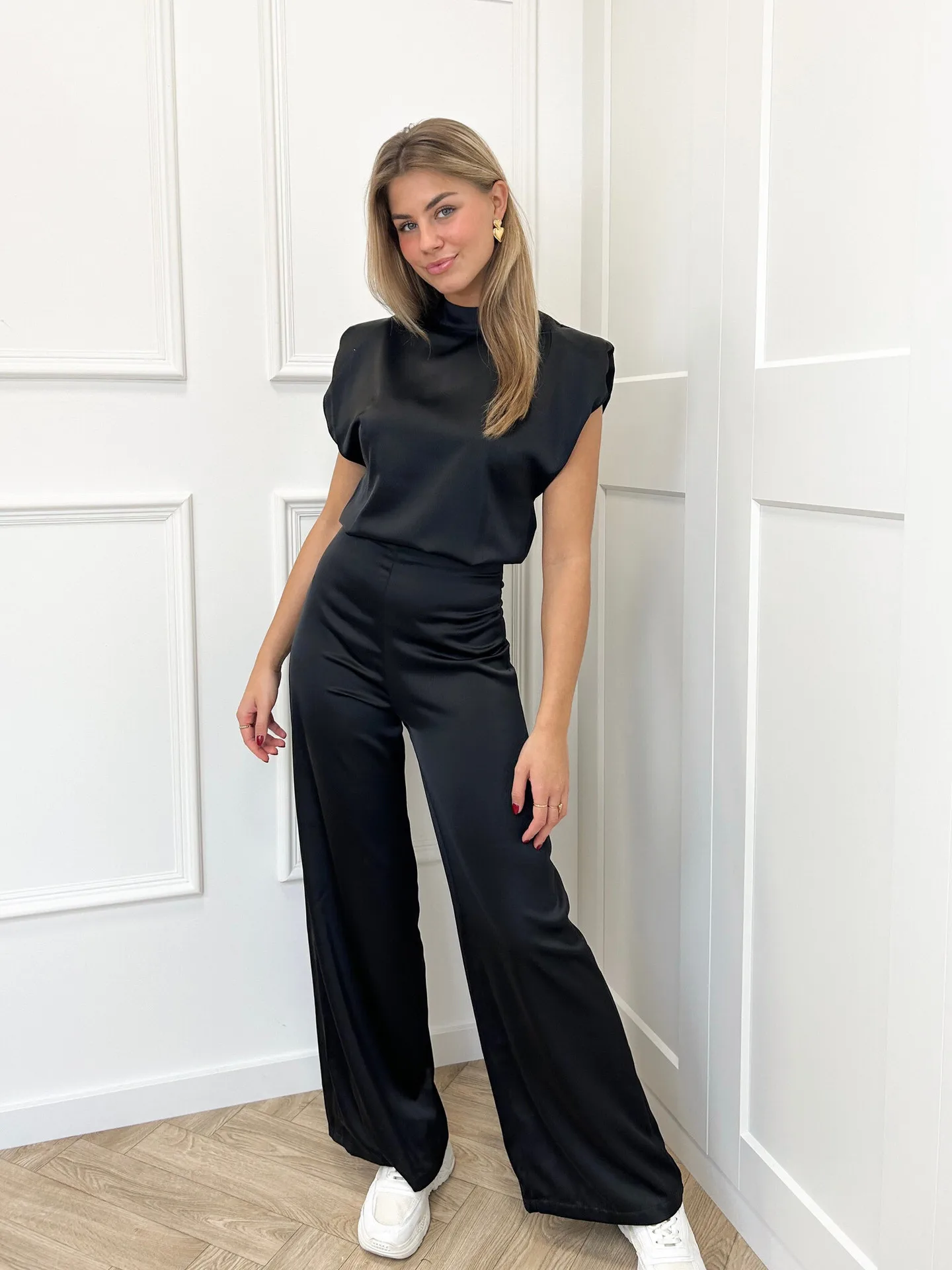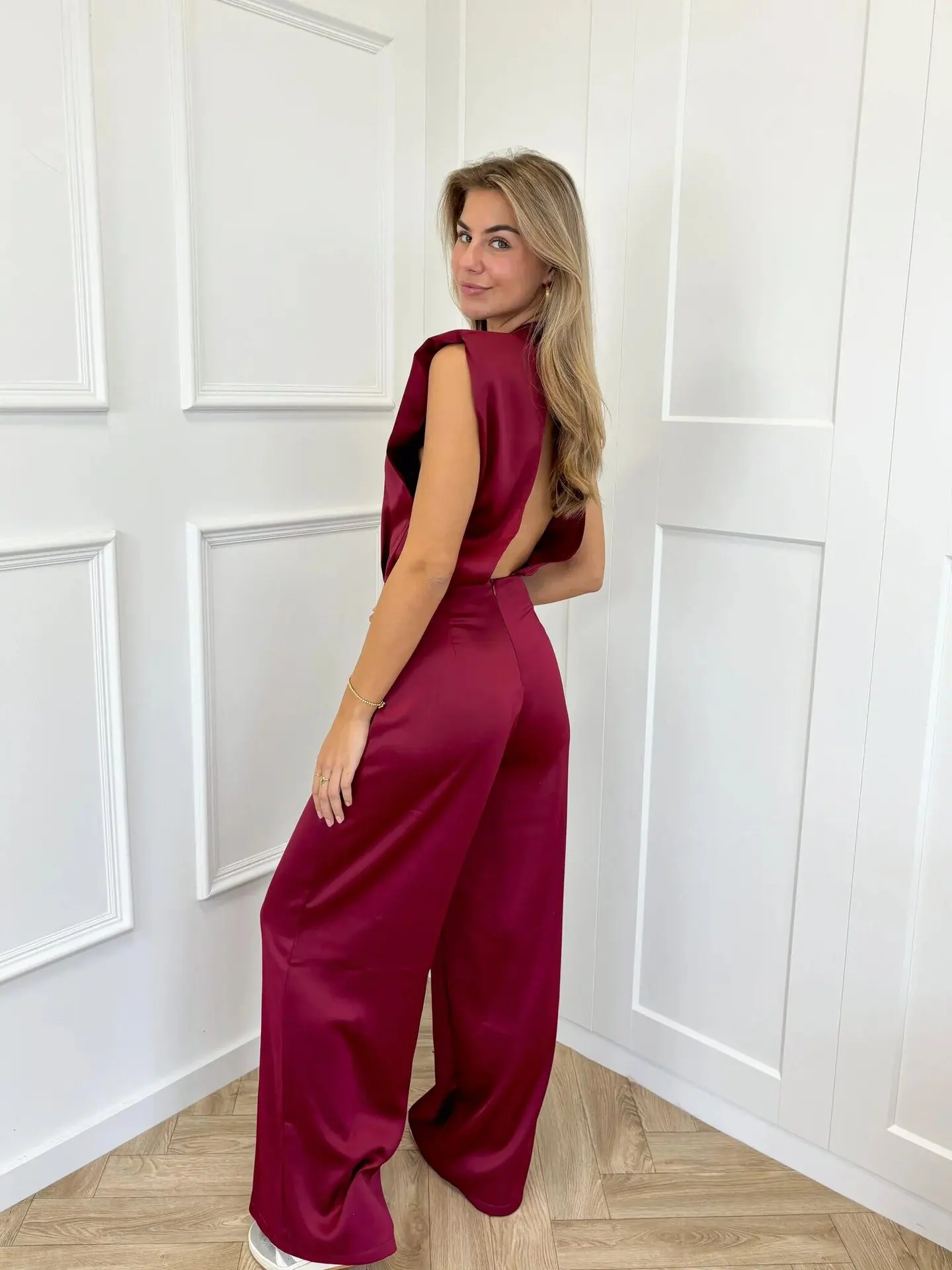 Deze elegante satijnen jumpsuit is een echte eyecatcher! Gemaakt van een luxueuze, gladde stof die prachtig valt en een subtiele glans geeft. De mouwloze snit en open rug zorgen voor een vrouwelijke, verfijnde uitstraling, perfect voor zowel chique gelegenheden als zomerse dagen. Verkrijgbaar in maar liefst acht prachtige kleuren – van klassiek zwart tot levendig rood – zodat je altijd de perfecte match vindt voor jouw stijl.