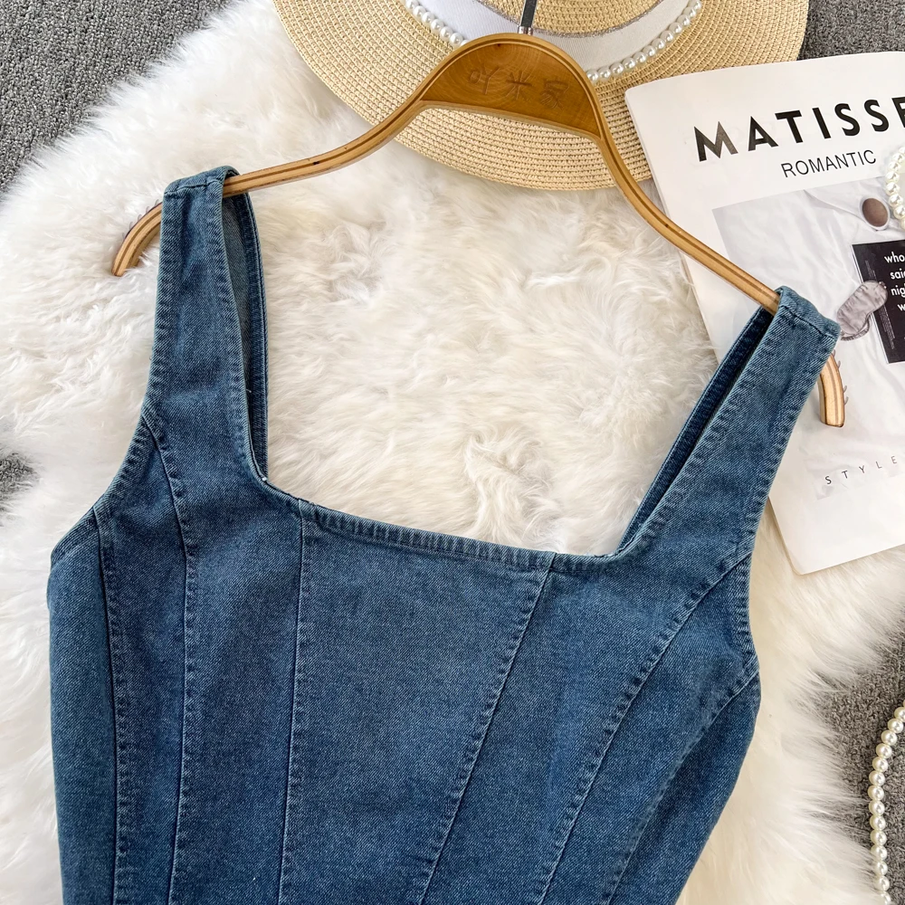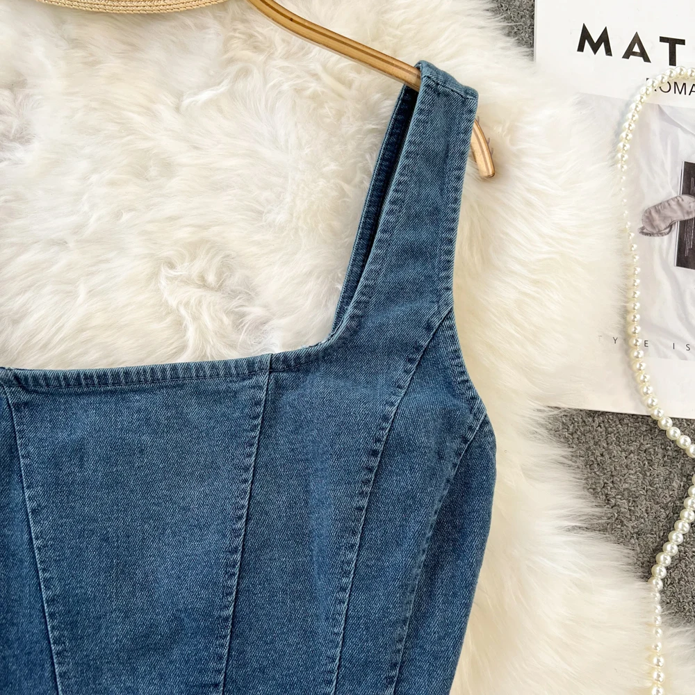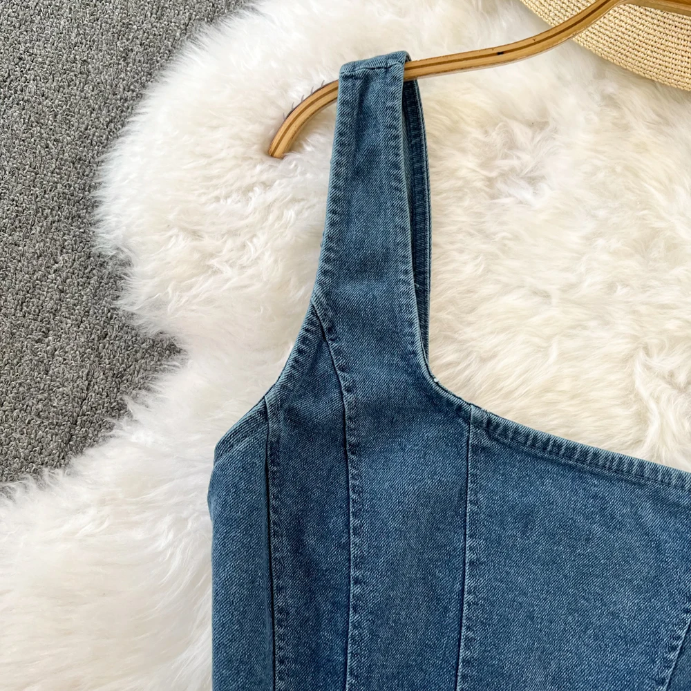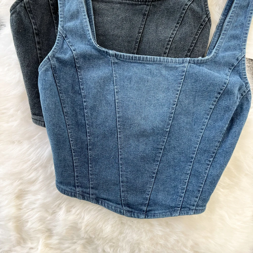 Wil jij de iconische stijl van Winter van aespa rocken? Deze mouwloze jeans top is identiek aan de trendy look die ze droeg en is een must-have voor elke MY! Met een stoere denim uitstraling en een perfecte cropped pasvorm, geeft deze top je direct die edgy en fashionable K-pop vibe.