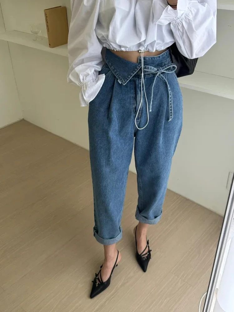 Ga voor die moeiteloze, stijlvolle K-fashion look en voeg deze high waist loose fit jeans toe aan je garderobe!