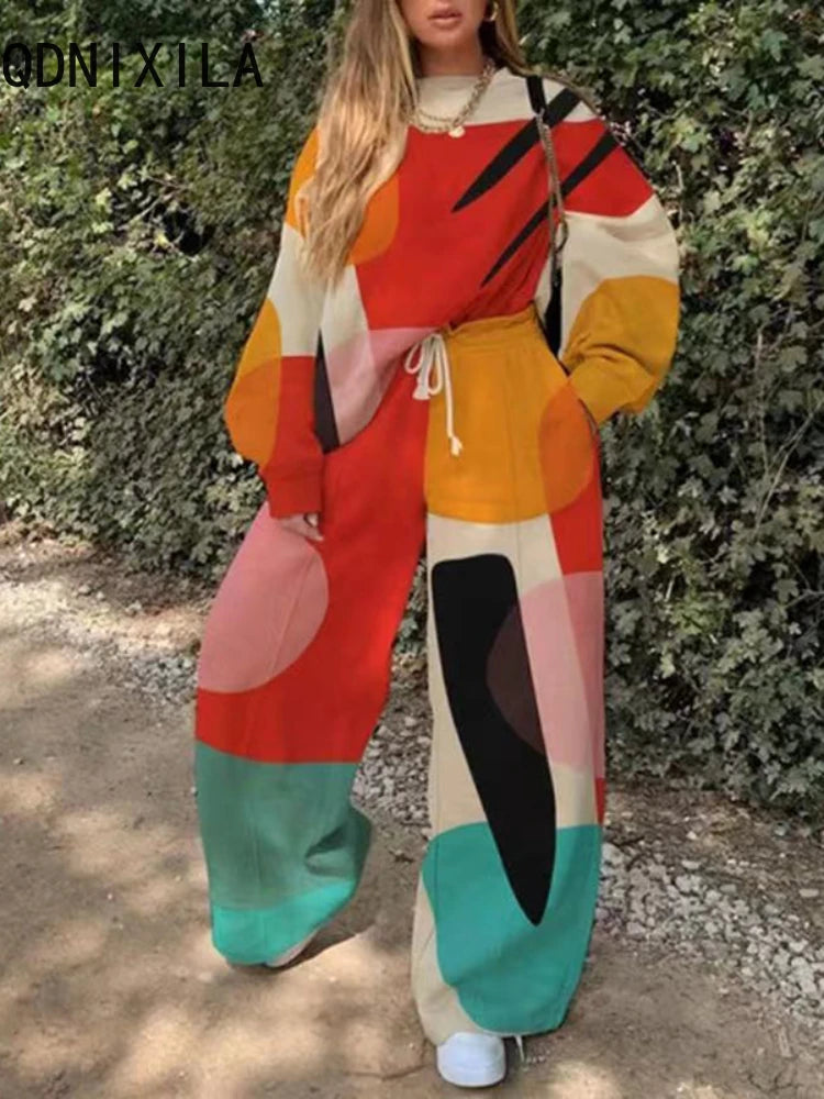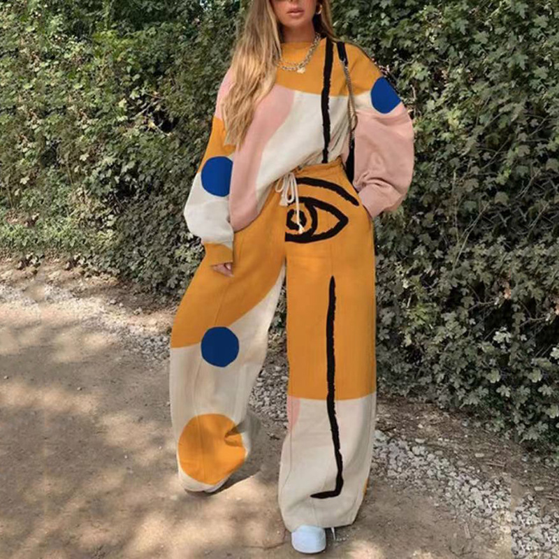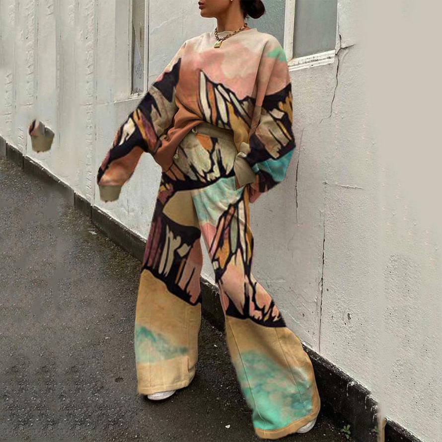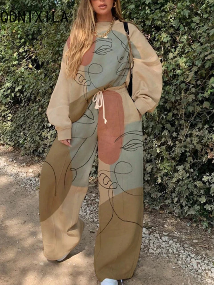 Printed – Casual Trainingspak met Wijde Pijpen!