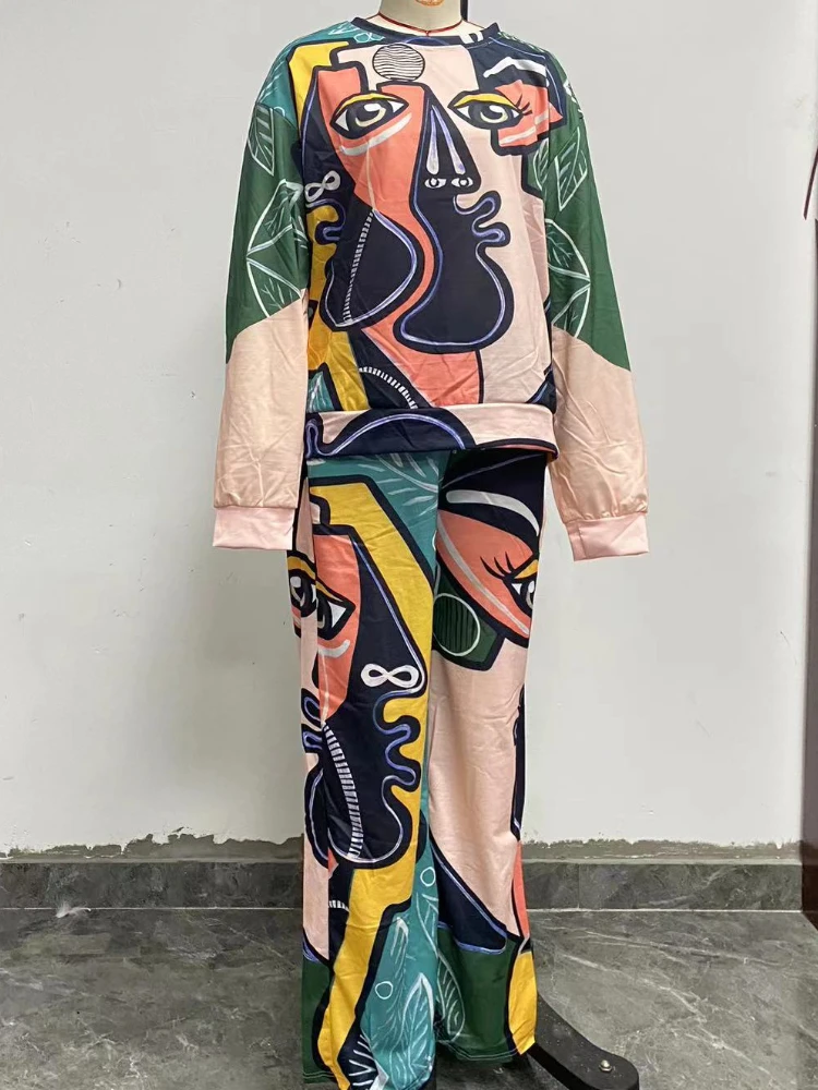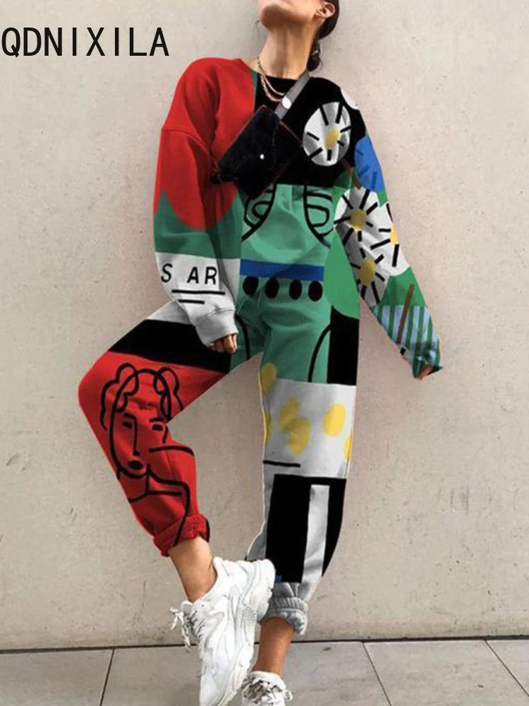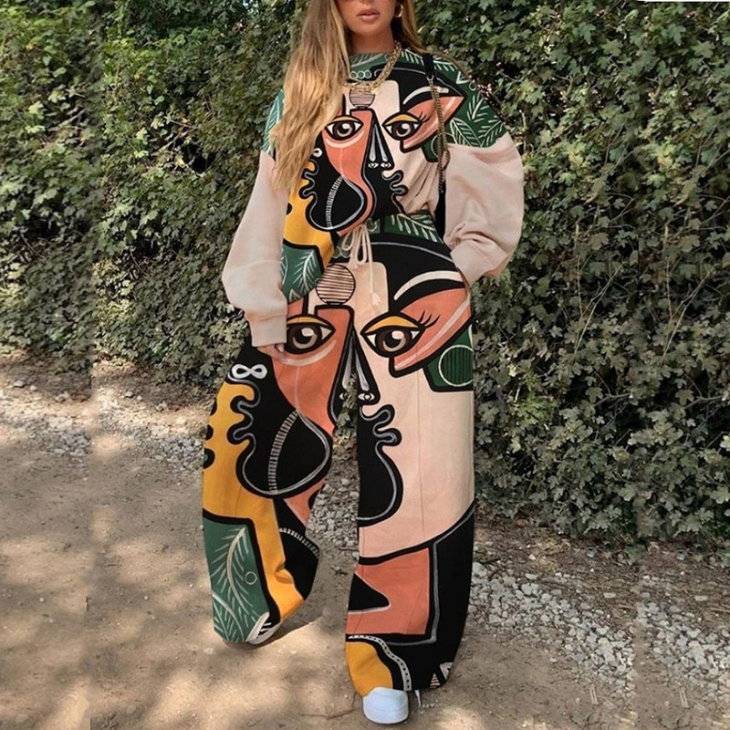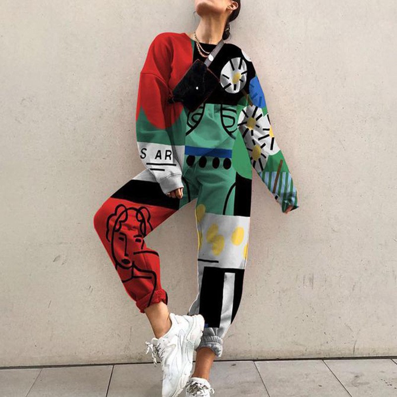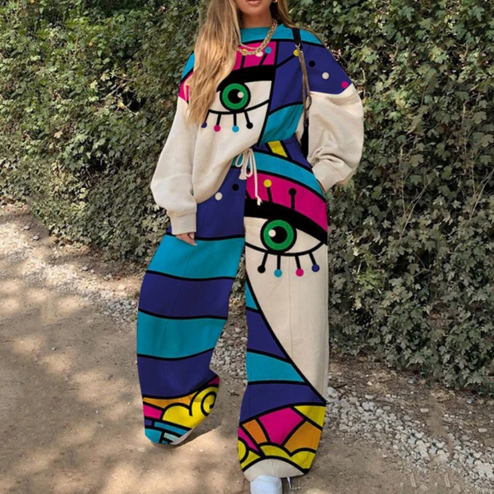 Printed – Casual Trainingspak met Wijde Pijpen!