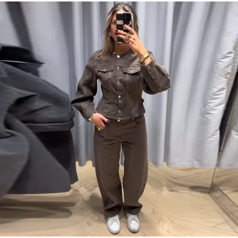 Wil jij de iconische K-pop look rocken? Dit denim pak met wijde pijpen broek en matching jacket is geïnspireerd op de stijl van Rosé van BLACKPINK! Een perfecte mix van casual en chic, ideaal voor een edgy streetwear look. Gemaakt van hoogwaardig denim voor een comfortabele pasvorm en een fashion-forward uitstraling.